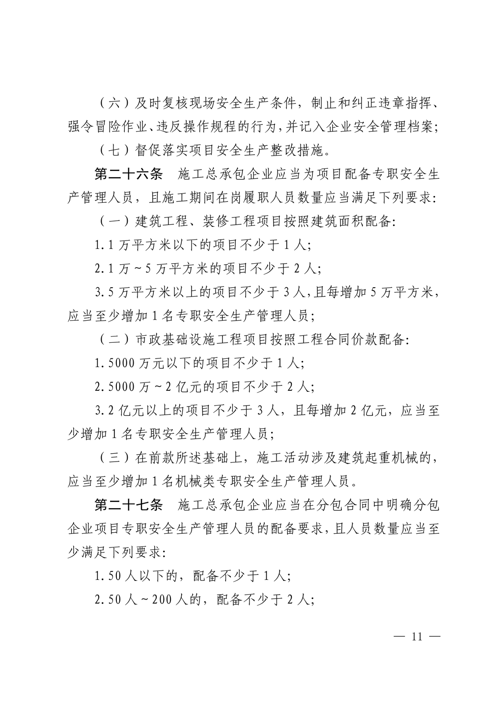 建筑施工企业、工程项目安全生产管理机构 设置及安全生产管理人员配备办法
